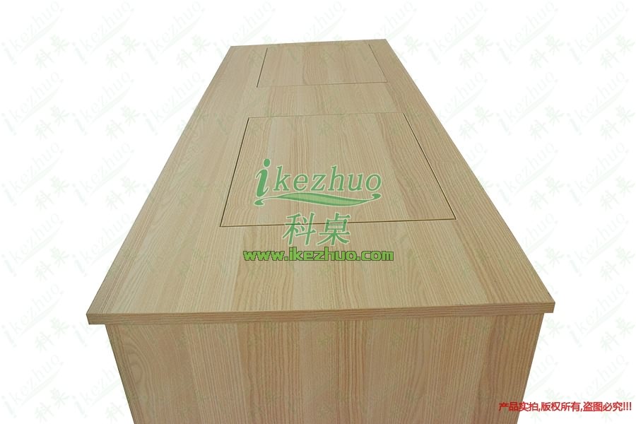 4、當不使用顯示器時,可手動按下顯示器翻蓋面板至桌面平整,顯示器自動鎖住隱藏在桌子內部,此時整個桌面成一個平面狀態