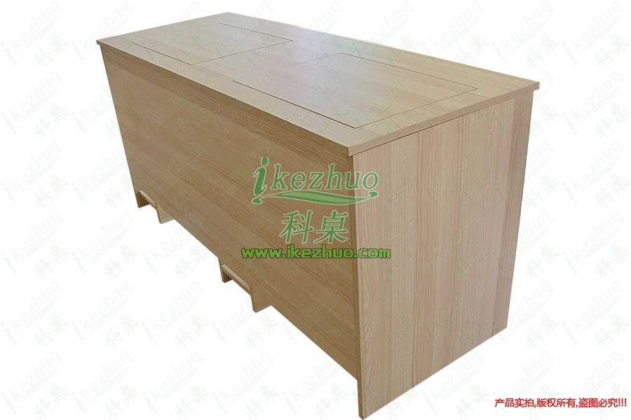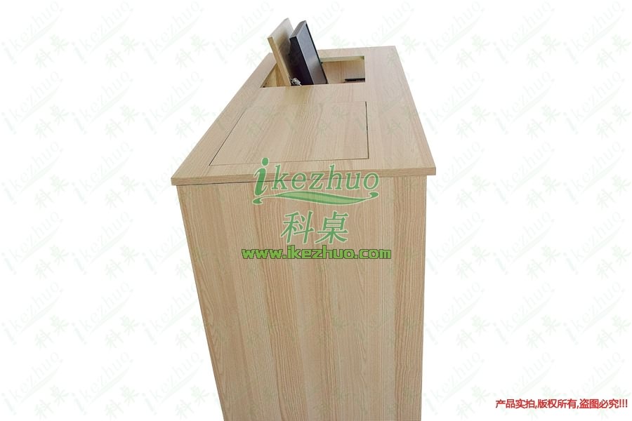 當需要使用顯示器時輕按前端桌面板隱藏在桌子內部的顯示器會自動從桌子下面升到桌面翻轉到合適角度。當不使用顯示器時,可手動按下顯示器翻蓋面板至桌面平整,顯示器自動鎖住隱藏在桌子內與桌面保持平整一致。起到防塵,防盜,保持桌面平整美觀。使用方便,手動控制,翻轉自如。